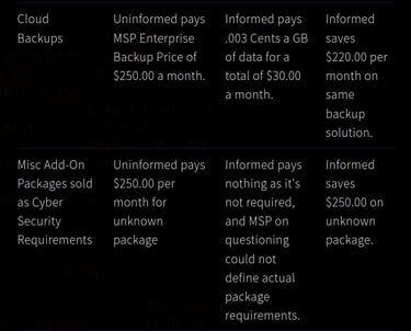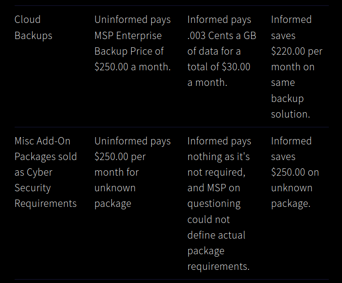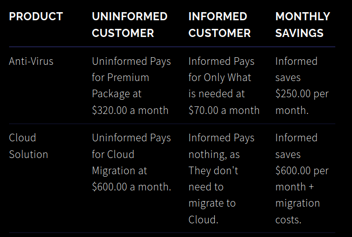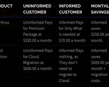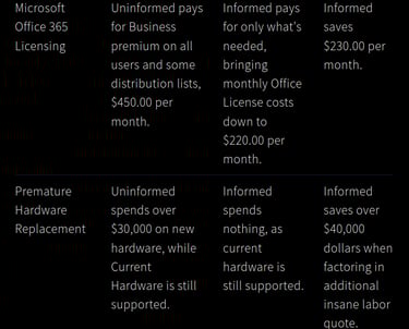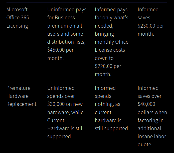 A true representation of the cost of Technical Services, based on real data comparing a client's situation before and after Columbus Tech Audit was involved.